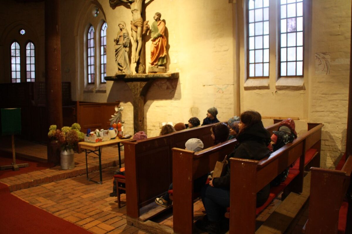 Einen spannenden Einblick in das Leben und Arbeiten innerhalb einer Kirche erlebten die Kinder am 14. November 2025, als sie in die Kraaker Kirche eingeladen wurden. Freundlich begrüßt wurden sie von Küsterin Conny Lambrecht und dem Pastor Martin Schabow, die sich viel Zeit nahmen, den kleinen Gästen ihre Kirche näherzubringen. Zur Begrüßung sangen wir gemeinsam das Lied“ Tragt in die Welt nun ein Licht“.